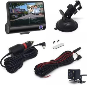 Grave tudo o que acontece dentro e fora do carro com a câmera veicular Knup S132. Com 3 câmeras (frontal, interna e traseira) e uma tela LCD de 4 polegadas, este dispositivo oferece alta definição, visão noturna, monitor de estacionamento e muito mais.