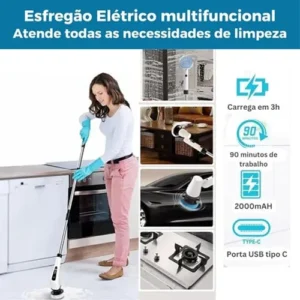 Chega de esforço e sujeira difícil! Com essa escova elétrica 9 em 1 você vai deixar sua casa brilhando com o mínimo de trabalho e máxima eficiência. Ideal para limpar cozinhas, banheiros, pisos, azulejos, vidros e muito mais.
