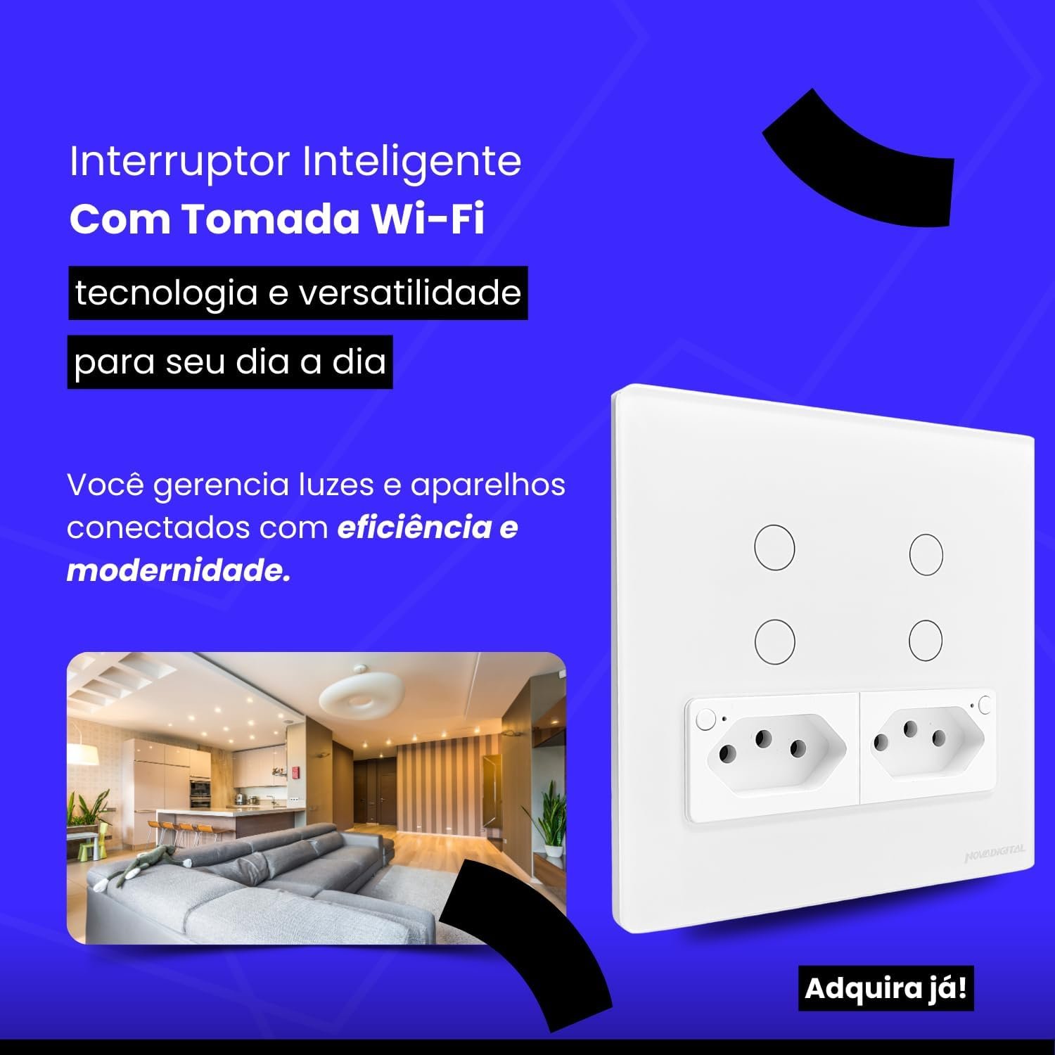 Garanta já o seu Interruptor Inteligente Touch 2 Botões com Tomada e viva o futuro da sua casa hoje.