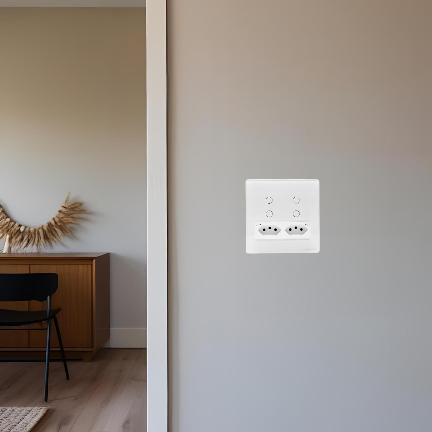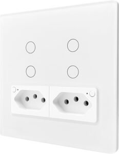 Eleve sua experiência em automação residencial com esse Interruptor Inteligente Touch Wi-Fi com 2 botões e tomada integrada, que une praticidade, elegância e alta funcionalidade.