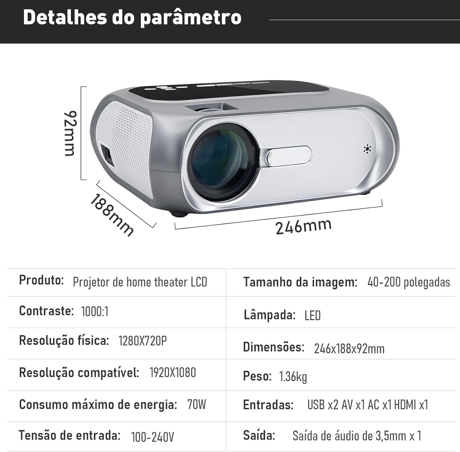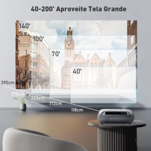 Este modelo permite projeções que variam entre 40 a 200 polegadas, perfeito para qualquer tipo de ambiente