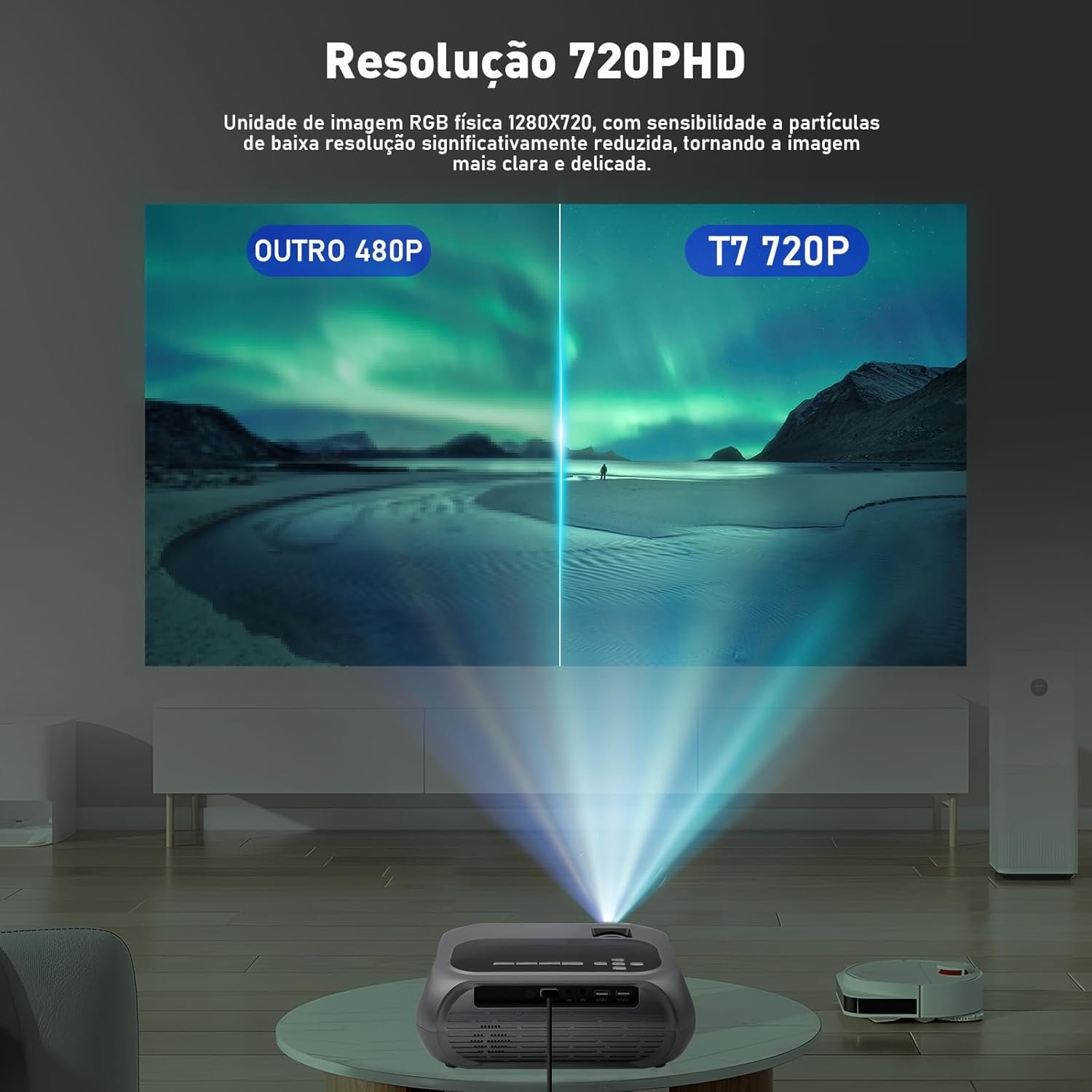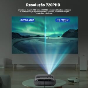 Descubra o poder da projeção com o Projetor T7, moderno, prático e cheio de recursos. Com 4.000 lúmens de brilho, ele oferece imagens claras em ambientes com iluminação média, tornando-se ideal para apresentações, salas de aula, home theater ou uso em ambientes domésticos.